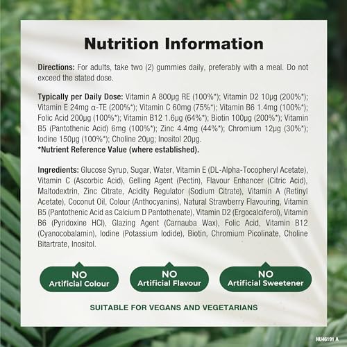DELICIOUSLY CONVENIENT: Each chewable gummy is packed with a sweet, fruity strawberry flavour, offering a tasty and easy alternative to traditional tablets. Getting your essential nutrients has never been more enjoyable!