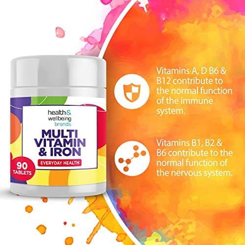 Multivitamin & Iron (180) 2 x 90 Easy to Swallow Tablets (180) with Vitamins A,B,D,C,E and Minerals, One a Day, Support for Immune System,