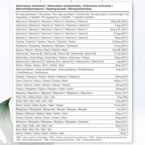 INCLUDES: Vitamin A, B’s, C, D3, E, K, Magnesium, Zinc, Iron, Copper, Selenium, Chromium and more in an easy-to-swallow tablet!