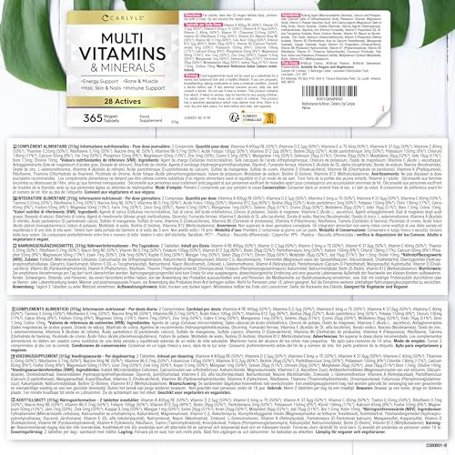 Multivitamin Tablets for Men and Women | 365 Count | with 28 Essential Vitamins and Minerals | Vegan Supplement | by Carlyle
