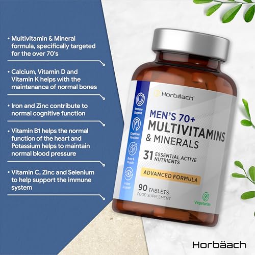 Multivitamin Tablets for Men and Women 70 Plus | 90 Count | with 32 Essential Vitamin and Minerals for 70+ | Suitable for Vegetarians | by Horbaach