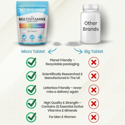 Multivitamin Tablets for Women & Men | 22 Essential Active Multi Vitamins & Minerals | 4 Month Supply (Tablet, not Powder or Multivitamins Capsule) | UK Made Supplements