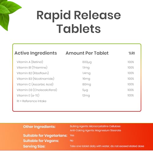 EASY TO TAKE – Made in the UK, we provide essential vitamins in a small, easy-to-swallow tablet that is ideal for those who have difficulty swallowing large pills. Simply take one tablet a day with a meal for optimal absorption and maximum benefits.
