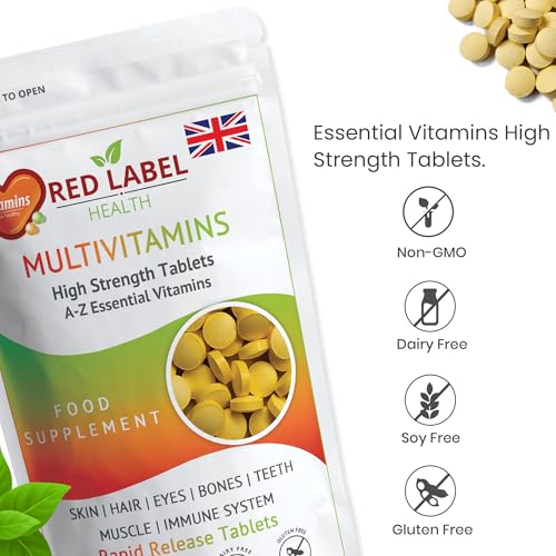 Red Label Health Multivitamin Tablets for Men & Women, 100 Tablets (3+ Months Supply), A-Z Multivitamins, Essential High Strength Supplement for Immune Support, One a Day Multivitamins