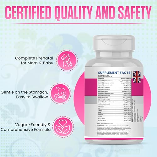 ✔️ 20 Nutrients in One Daily Tablet A complete prenatal multivitamin formula with folic acid 800µg, iron, vitamin D3 (2000 IU), DHA, probiotics and more – tailored for women trying to conceive, expecting, or postnatal.
