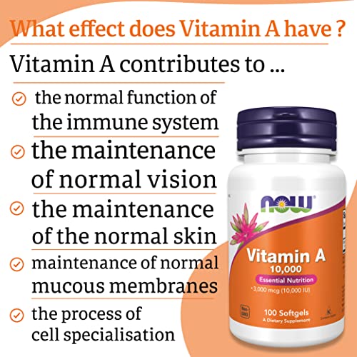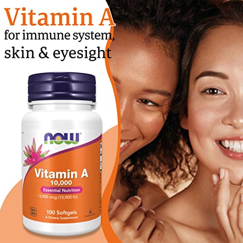 Now Foods, Vitamin A, 10.000IU (3.000mcg), from Retinyl Palmitate and Cod Liver Oil, High Dose, 100 Capsules, Gluten Free, SOYA Free, Non-GMO, Eye-Health