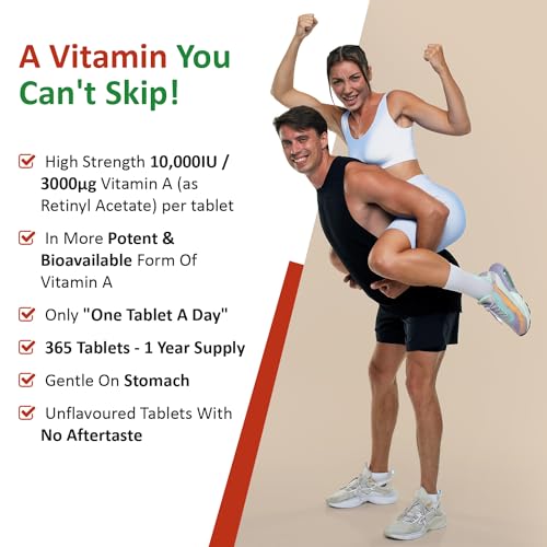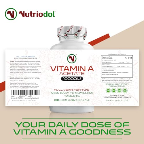 Nutriodol Vitamin A 10,000IU | 365 Easy to Swallow Tablets | High Strength | for Normal Skin, Eyes & Immune System | Clean Formula by Nutriodol.