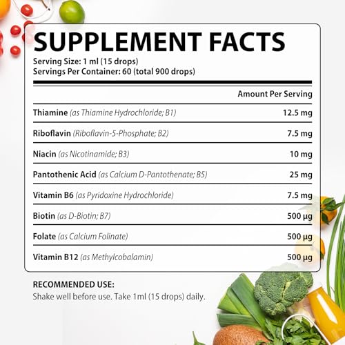 Liposomal Vitamin B Complex Liquid – High Strength B-Vitamin Complex Drops, Supports Immune System and Energy Levels, 60ml (Pack of 1)