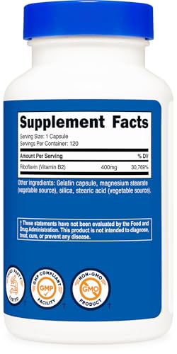 Nutricost Vitamin B2 (Riboflavin) 400mg, 120 Capsules – Gluten Free, Non-GMO, Energy Boost, Premium Quality