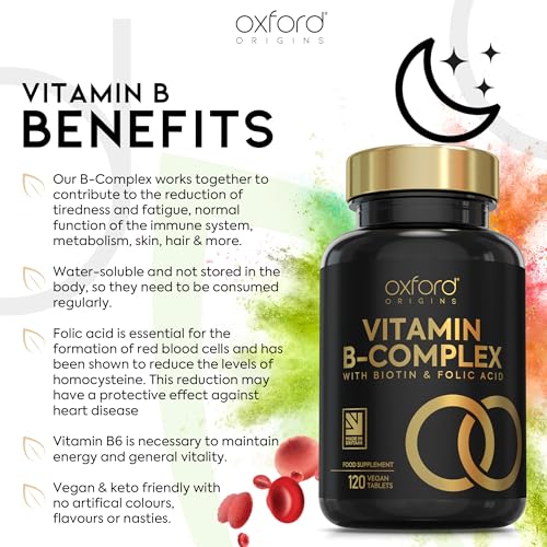 Ultra Vitamin B Complex High Strength | 120 Vegan Tablets, 4 Month Supply | All B Vitamins – Vitamin B12, Folic Acid (B9), Biotin (B7), B6, B5, B3, B2, B1 | VIT B Complex Supplement | Made in The UK
