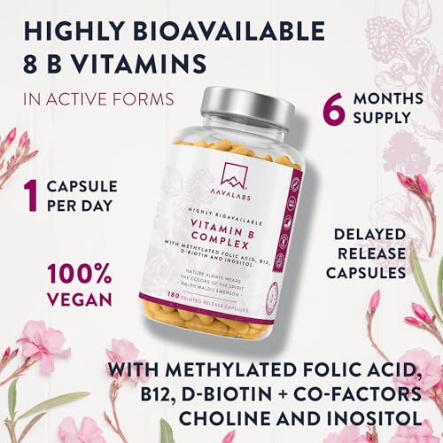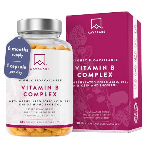 Vitamin B Complex High Strength – Includes Essential Multi B-Vitamins B12, Vitamin B6, Vitamin B1, Vitamin B5 Pantothenic Acid, Niacin, Biotin, Folate, Riboflavin, Inositol – (180 Capsule Supply)