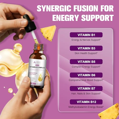 🏋️♂️【8 Essential B vitamins】–Vitamin B Complex liquid contains 8 essential B vitamins, including Thiamin (Vitamin B1), Riboflavin (Vitamin B2), Niacin (Vitamin B3), Pantothenic Acid (Vitamin B5), Vitamin B6, Biotin (Vitamin B7), Folic Acid (Folate), and Vitamin B12 (Cyanocobalamin)
