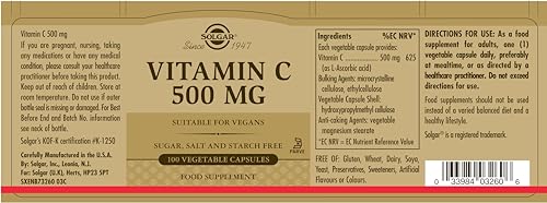 ✓ SEASONAL IMMUNITY SUPPORT – Solgar Vitamin C 500 mg Vegetable Capsules contains Vitamin C, an antioxidant vitamin essential to the body’s health and is often seasonally used to support the immune system. Vitamin C is also known to support healthy skin and joints. Also known as Ascorbic Acid, Vitamin C is a water-soluble vitamin