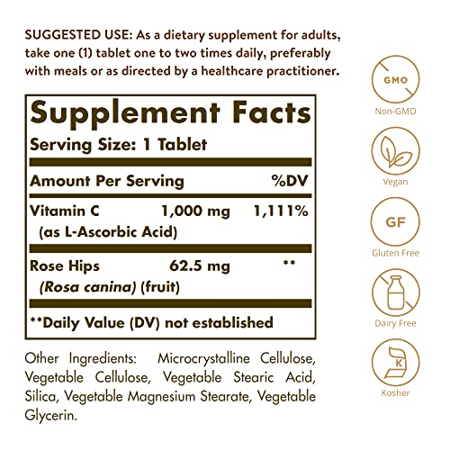✓ SUPPORTS YOUR IMMUNE SYSTEM Solgar Vitamin C 1000 mg with Rose Hips is a premium supplement suitable for vegans and just 1 tablet a day provides 1000 mg of Vitamin C and one of its synergistic counterparts, rose hips