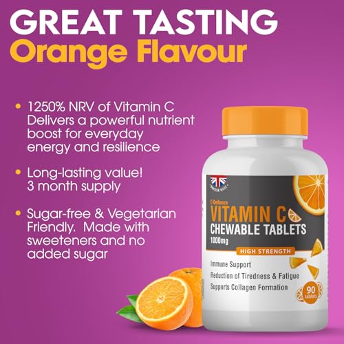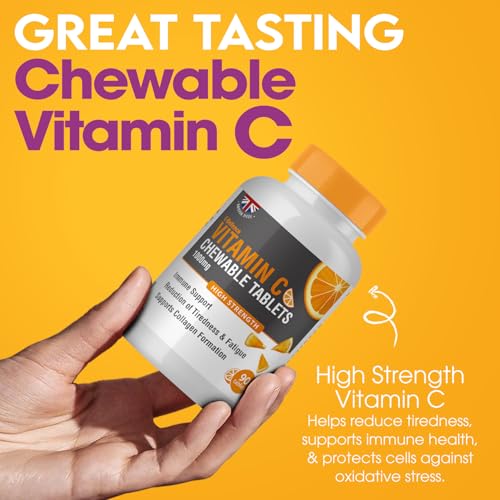 BOOSTS IMMUNITY: Vitamin C is scientifically proven to improve our immune systems and help reduce the feelings of tiredness and fatigue, protecting you against colds and illness. Our high-strength chewable Vitamin C tablets will help keep your immune system strong and fight the feeling of tiredness and fatigue to give you more energy.