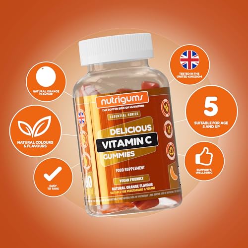 Vitamin C 80mg Gummy | Orange Flavour | 60 Vegan Gummies | Immune, Energy & Collagen Formation Support by NUTRIGUMS®