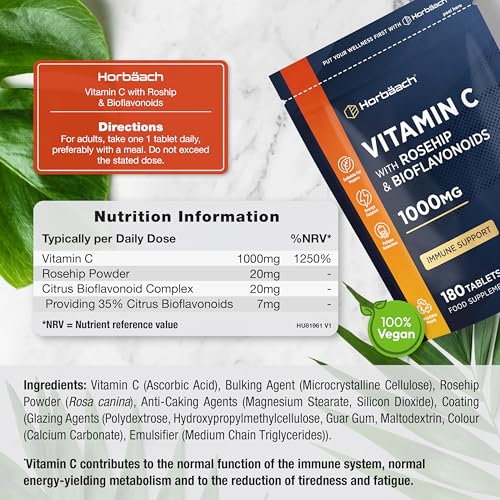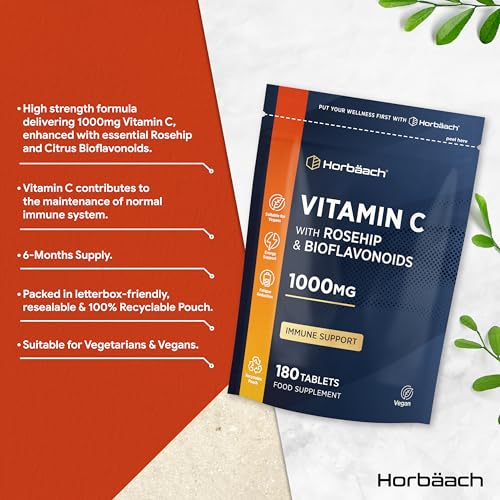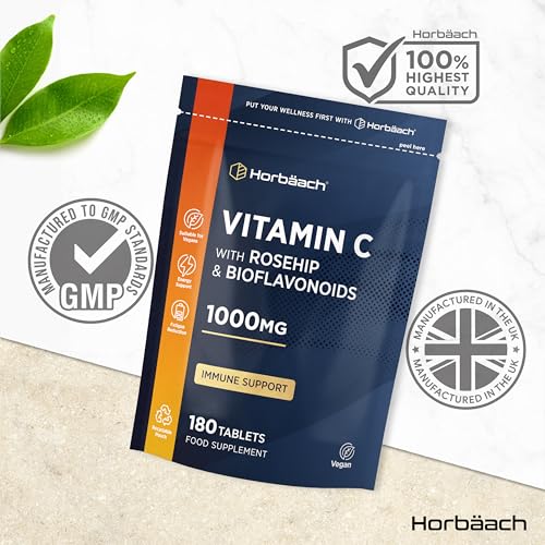 Vitamin C Complex with Rosehip and Bioflavnoids 1000mg | 180 Tablets | High Strength Supplement | Vegan and Vegetarian Friendly | by Horbaach