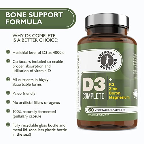 Barefoot Nutrition – Vitamin D3 Complete 4000 IU, with Vitamin K2 MK-7, Magnesium, Boron & Zinc Supplement, High Strength Formula for Bone and Normal Health Function, 60 Capsules