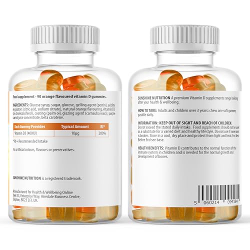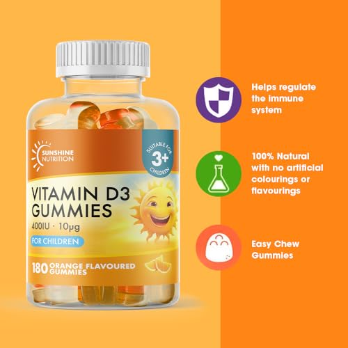 SPECIALLY TAILORED VITAMINS FROM THE EXPERTS: Sunshine Nutrition vitamin D 10 micrograms gummies offer the ideal amount of vitamin D for a daily dose, and are scientifically tailored to provide the best form of vitamin D (D3) for the human body.