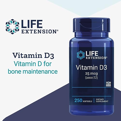 Life Extension, Vitamin D3, 1000 IU (25mcg), 250 Softgels, Gluten Free, SOYA Free, Non-GMO