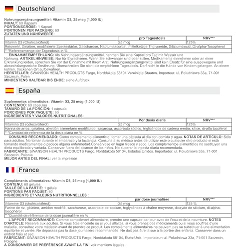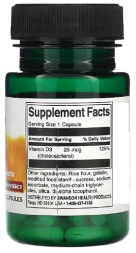 Swanson Vitamin D-3 capsules deliver 1000 IU of this essential nutrient in every serving, helping to maintain strong bones, healthy teeth, and a resilient immune system. Known as the ‘sunshine vitamin,’ D-3 plays a vital role in calcium absorption, making it indispensable for overall health. With 60 capsules per bottle, enjoy a generous two-month supply. Trust Swanson’s dedication to quality to support your health and wellness journey.