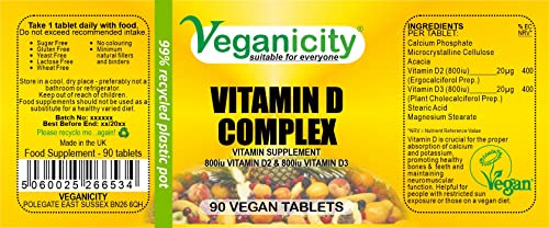 Veganicity Vitamin D 1600 Complex (40µg) : General Well-Being and Joint Health Supplement – 90 Tablets, in a Planet-Friendly 99% Recycled Pot