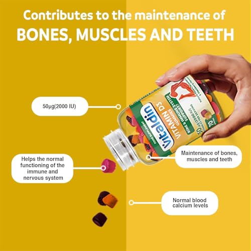 ✔ HELPS THE NORMAL FUNCTIONING OF THE IMMUNE SYSTEM: VITALDIN gummies contain a total of 50 mcg (2.000 IU) of vitamin D3 in each daily dosage (2 gummies), contributing to the proper functioning of the immune system.