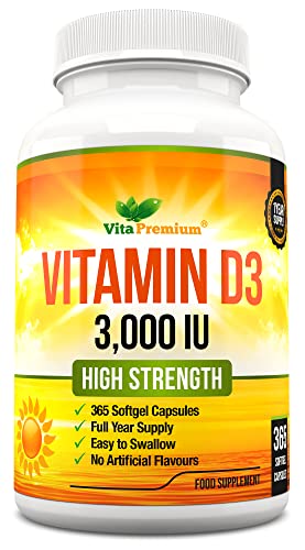Vitamin D 3,000 IU, High Strength Vitamin D3 Supplement, 365 Easy to Swallow Softgels – Full Year Supply