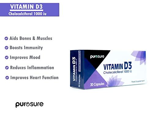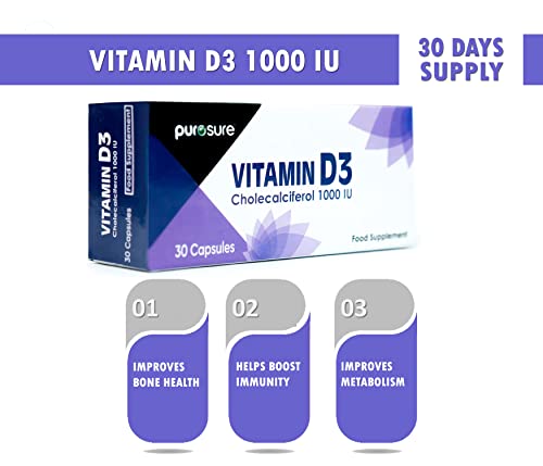 High Strength Vitamin D3 Capsules: Purosure Vitamin D3 supplement capsules offers 1000 IU per softgel capsules for providing more “Sunshine Vitamin” your body needs. Use 1 capsule a day.