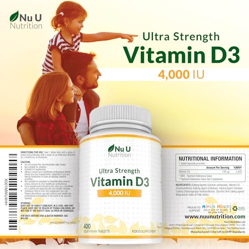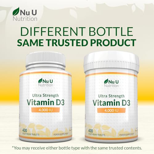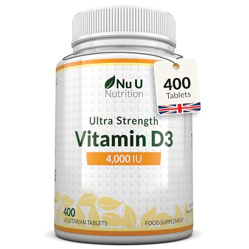 Vitamin D3 4000 IU – 400 Vegetarian Tablets – 13 Month Supply – High Strength 100 mcg Vitamin D – Immune System, Bone and Muscle Function Support – Made in The UK – Nu U Nutrition