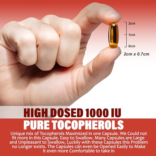 HIGH DOSED 1000 IU PURE TOCOPHEROLS – Unique mix of Tocopherols maximized in one capsule. We could not fit more in this capsule. Easy to swallow. Many capsules are large and unpleasant to swallow, luckily with these capsules this problem no longer exists. The capsules can even be opened easily to make it even more comfortable to take in.