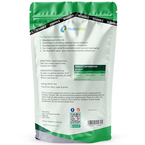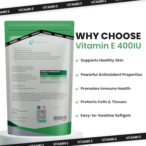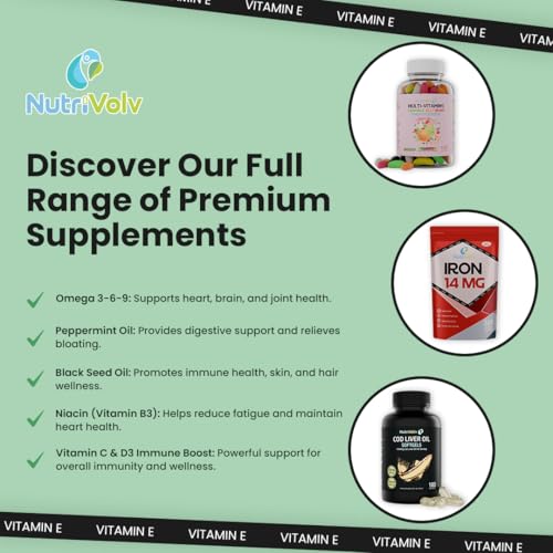 𝗩𝗶𝘁𝗮𝗺𝗶𝗻𝗘𝗔𝗻𝘁𝗶𝗼𝘅𝗶𝗱𝗮𝗻𝘁𝗦𝘂𝗽𝗽𝗼𝗿𝘁: Nutrivolv Vitamin E 400IU softgels provide natural antioxidant support, helping to protect cells from oxidative stress and damage.