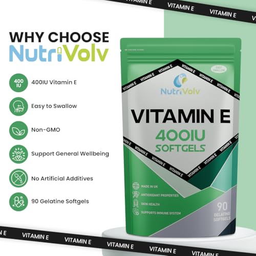 Nutrivolv Vitamin E 400IU – 90 Softgels | Antioxidant Supplement for Skin Support & Cell Protection | Helps Reduce Oxidative Stress, Promotes Healthy Skin & Immune Support