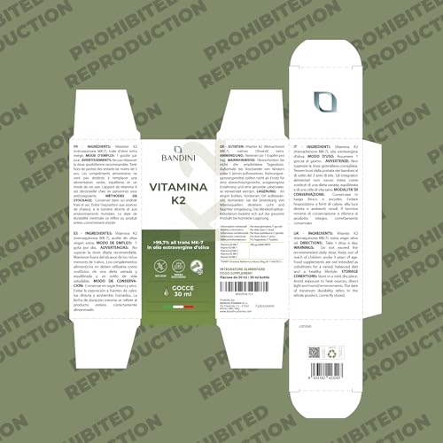Be the first to review “Bandini® Vitamin K2 MK-7 | 200 µg per drop & dose | High Strength, Vegan & Liquid MK 7 Menaquinone | 30 ml (840 drops) in Extra Virgin Olive Oil | For Bones & Normal Coagulation | High Bioavailability”