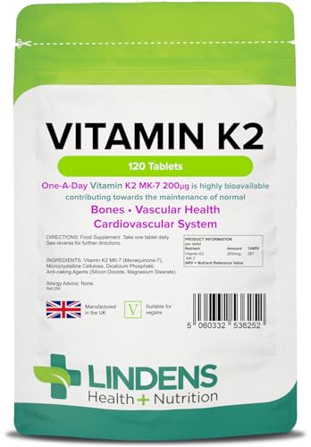 Lindens – Vitamin K2 200mcg, 120 Tablets – 1 a Day, UK Made – Highly Bioavailable – Bone, Vascular Health & Cardiovascular System – Menaquinon MK-7 – Letterbox Friendly, Vegan