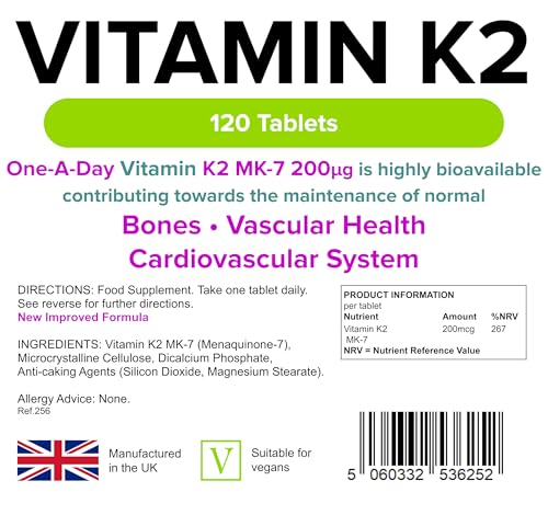 HIGH POTENCY – Our Vitamin K2 MK-7 supplement delivers 200µg of highly bioavailable K2 in each tablet, contributing to the maintenance of normal bones, vascular health, and a healthy cardiovascular system.