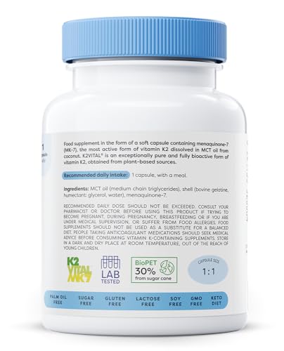 Osavi Vitamin K2 MK–7 100 μg – 60 Softgels | Highly Bioactive MK–7 in MCT Oil | Supports Normal Blood Clotting & Bone Health | K2VITAL®