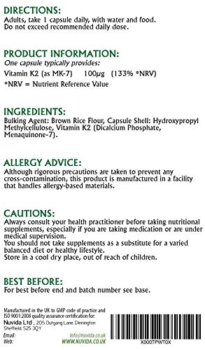 Nuvida Vitamin K2 Mk-7 capsules are manufactured in the UK to GMP code of practice and ISO 9001 quality assurance certification.