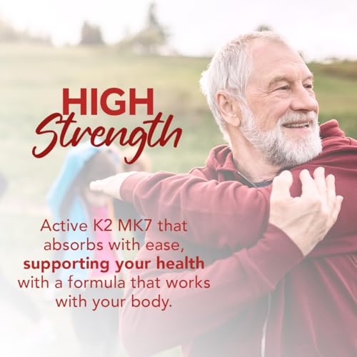 BUILDS STRONGER BONES: Vitamin K2 MK-7 ensures calcium goes where it counts, right to your bones. Unlike the less active forms, our MK-7 provides superior support for bone health. Just one tablet daily helps you stay strong and active no matter what your day brings.