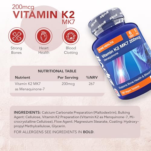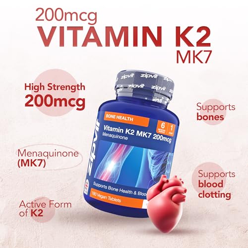 Zipvit Vitamin K2 MK7 200mcg, High-Strength, 6-Month Supply, 1-a-Day, 180 Tablets, Vegan Supplement for Heart Health & Strong Bones